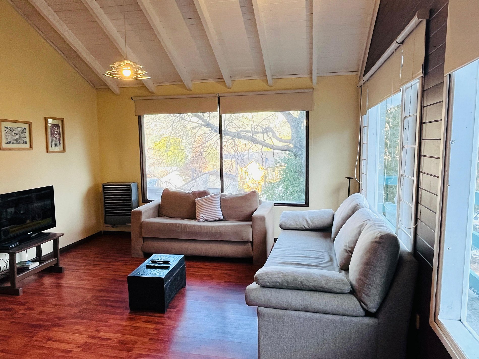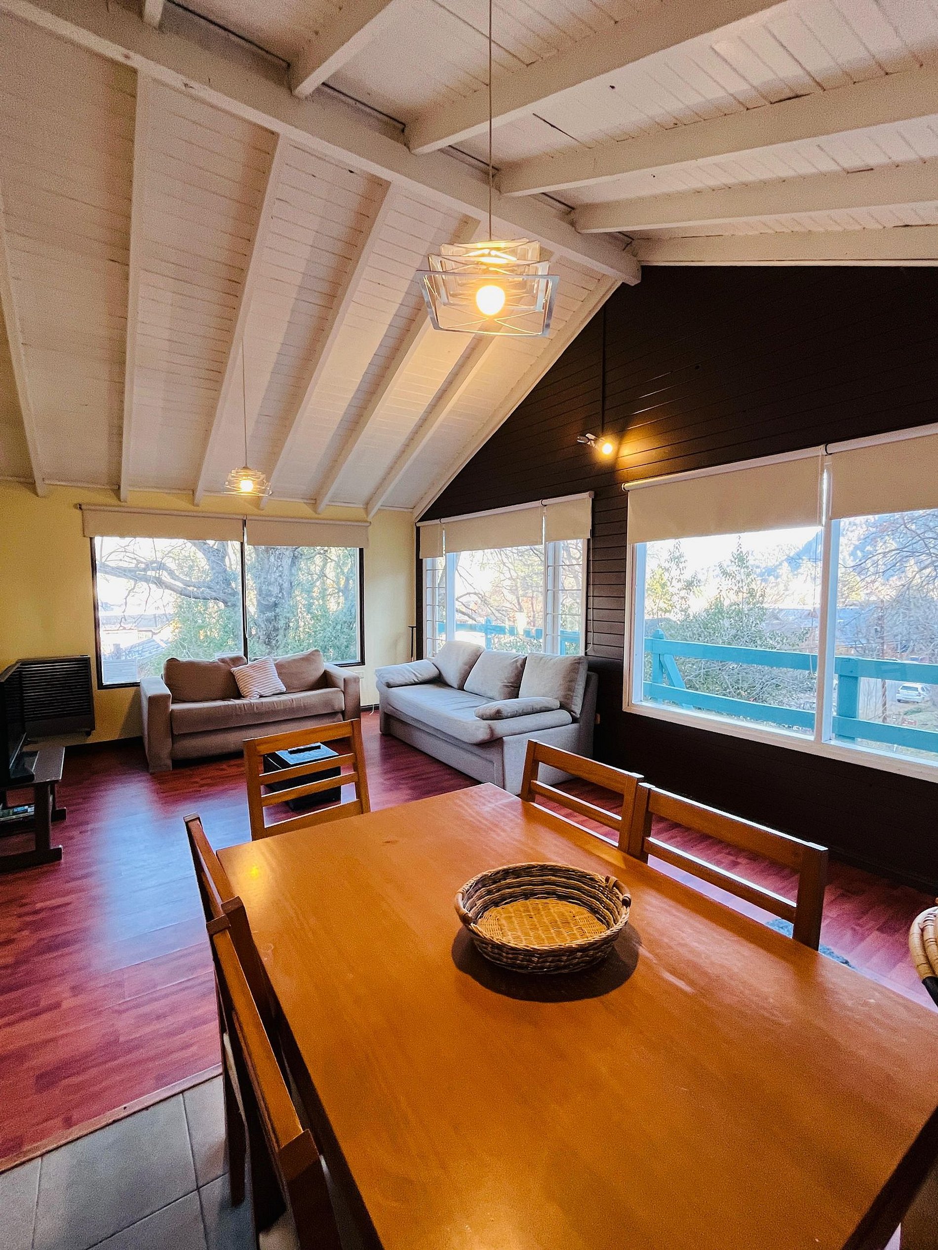 Alquiler cabaña para 4 en el centro de San Martín de los Andes. Cabaña muy luminosa a pocas cuadras de la plaza san martin. Se accede por escalera. Cabaña reciclada a nuevacon amplios ventales y muy lindas vistas a las montañas y al centro. Amplio dormitorio con baño en suite. Cocina totalmente equipada con tostadora eléctrica, cafetera, pava eléctrica y microondas. Vajilla completa para 4 personas. Calefactores a gas tiro balanceado. TV cable y WIFI Estacionamiento descubierto. Mínimo 2 noches