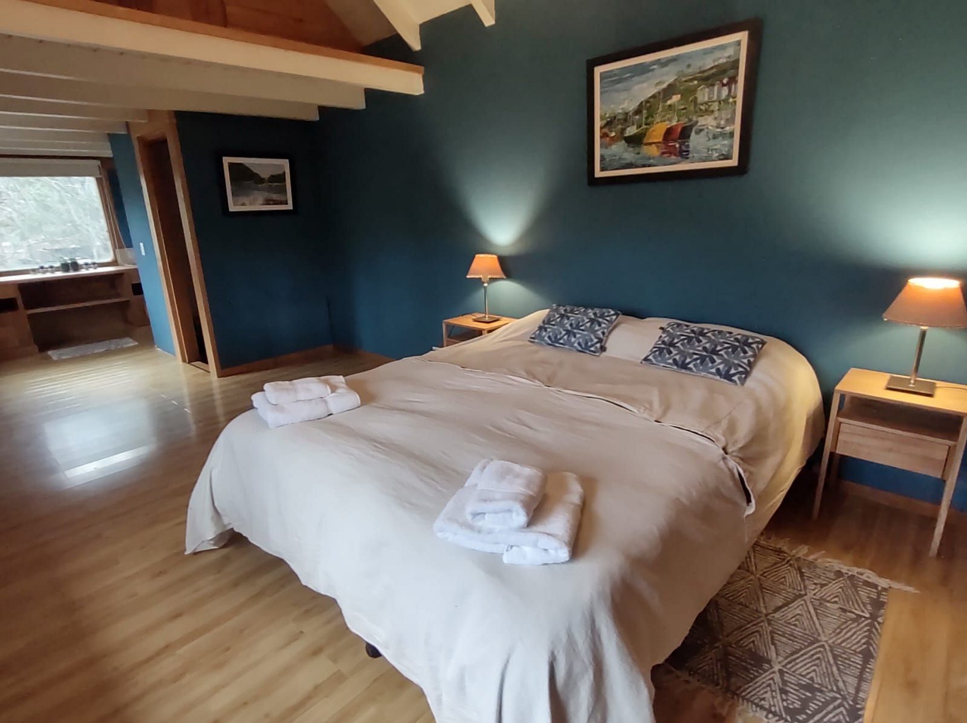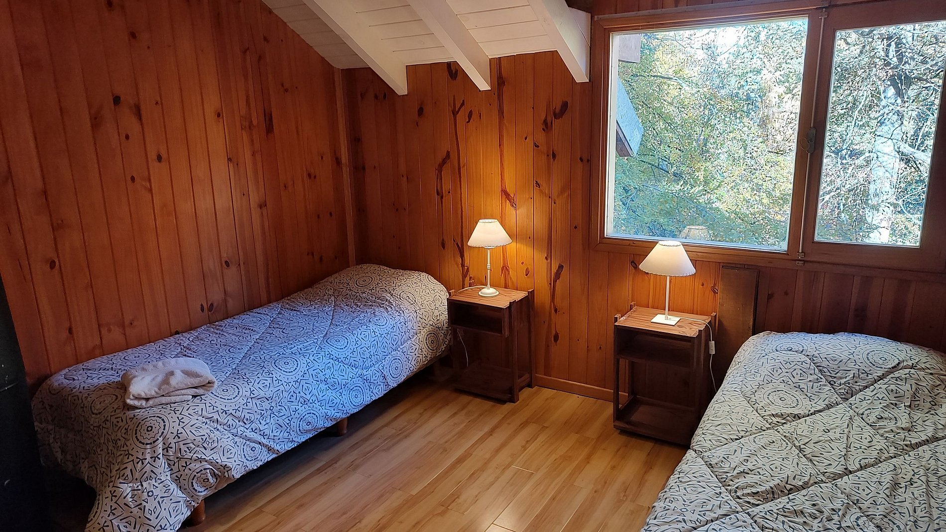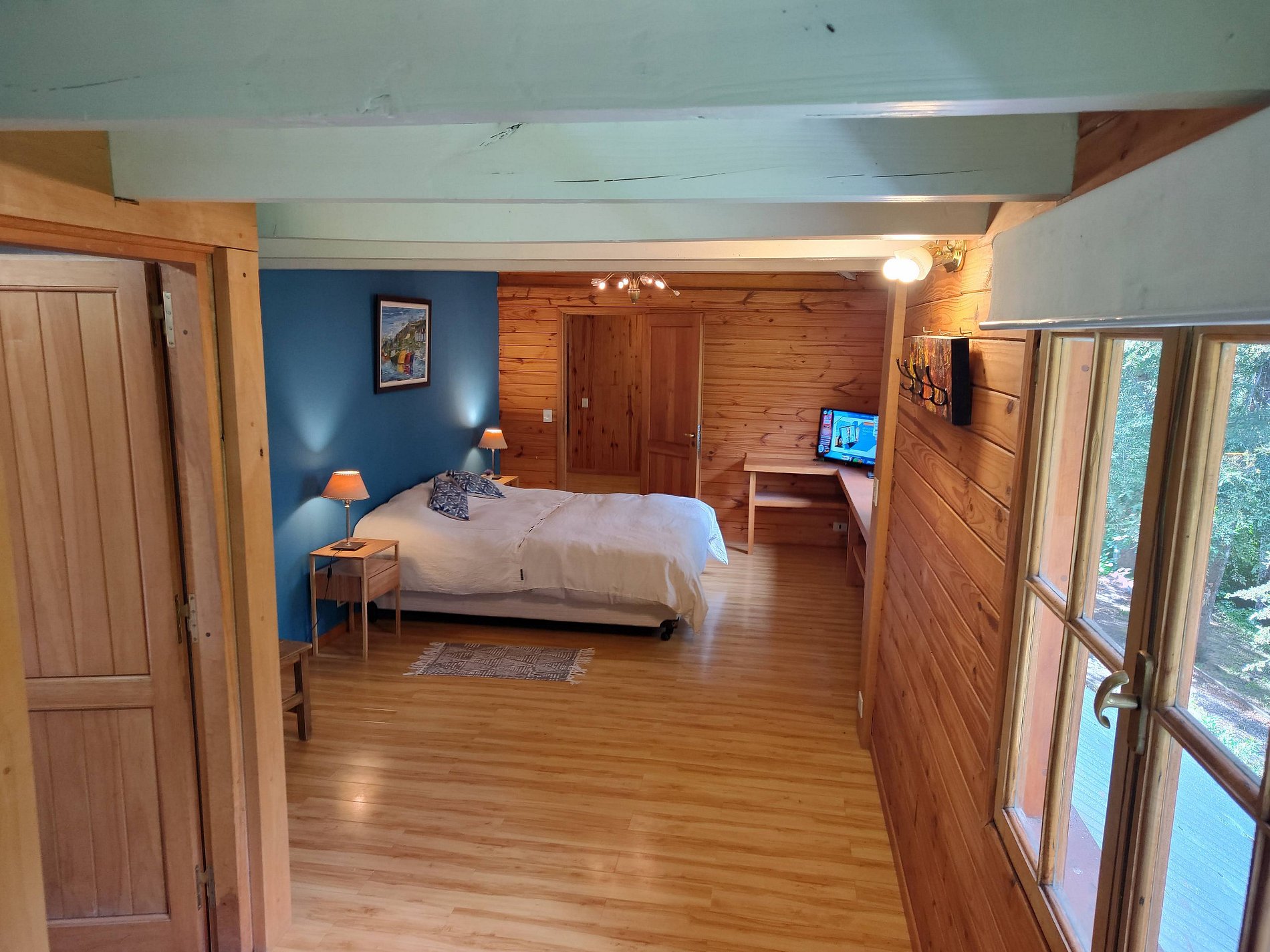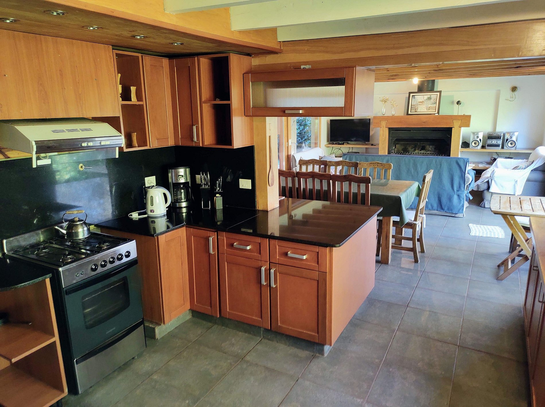 Cabaña a 10 min del centro con 5 dormitorios En PB 1 dormitorio matrimonial con baño completo Cocina totalmente equipada Comedor con hogar a leña, equipo de música Living c amplio ventanal al bosque y hogar a leña Bar Lavadero con lavarropas. 3 habitaciones, cada una con 2 camas de 1 plaza Dormitorio principal en suite sommier 2 plazas, Directv Playroom equipado con TV. Dos camas simples Amplio jardín con hamacas Galería trasera c jardín y parrilla exterior Alarma con monitoreo Losa radiante.
