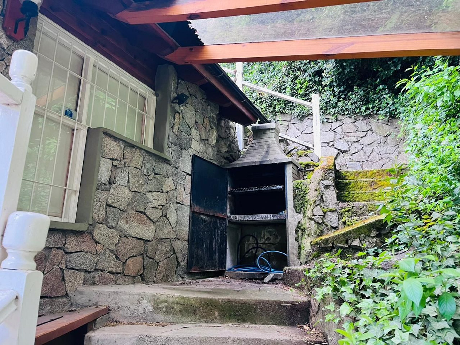 Nivel de acceso Living-comedor con hogar a leña con parrilla. Cocina completamente equipada. Living y sillones con ventanas que dan al arroyo y al puente. Un Toilette.
