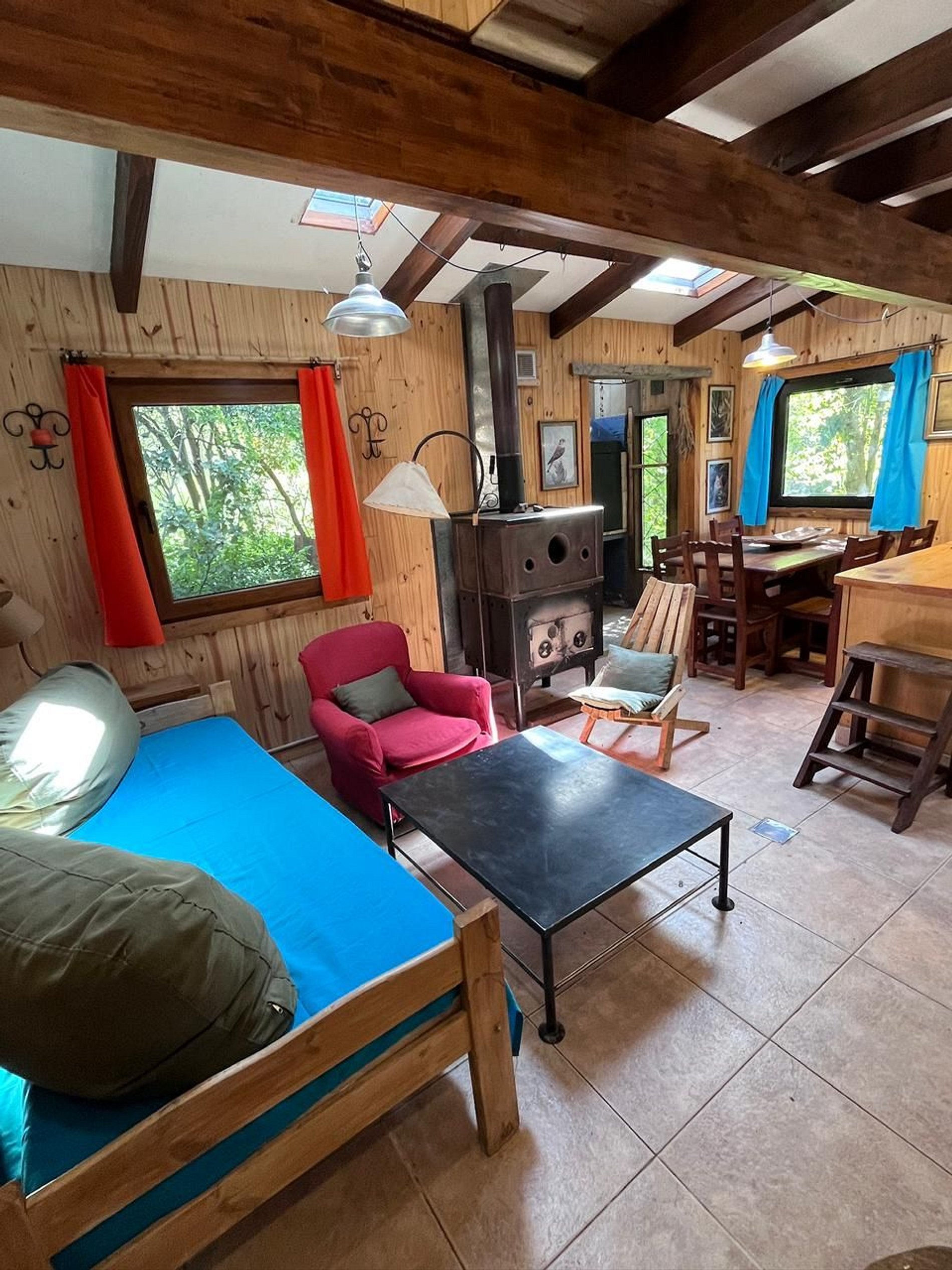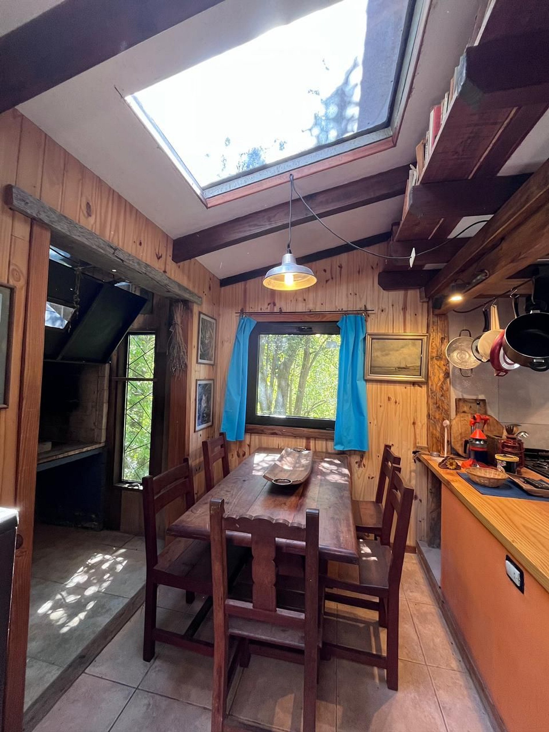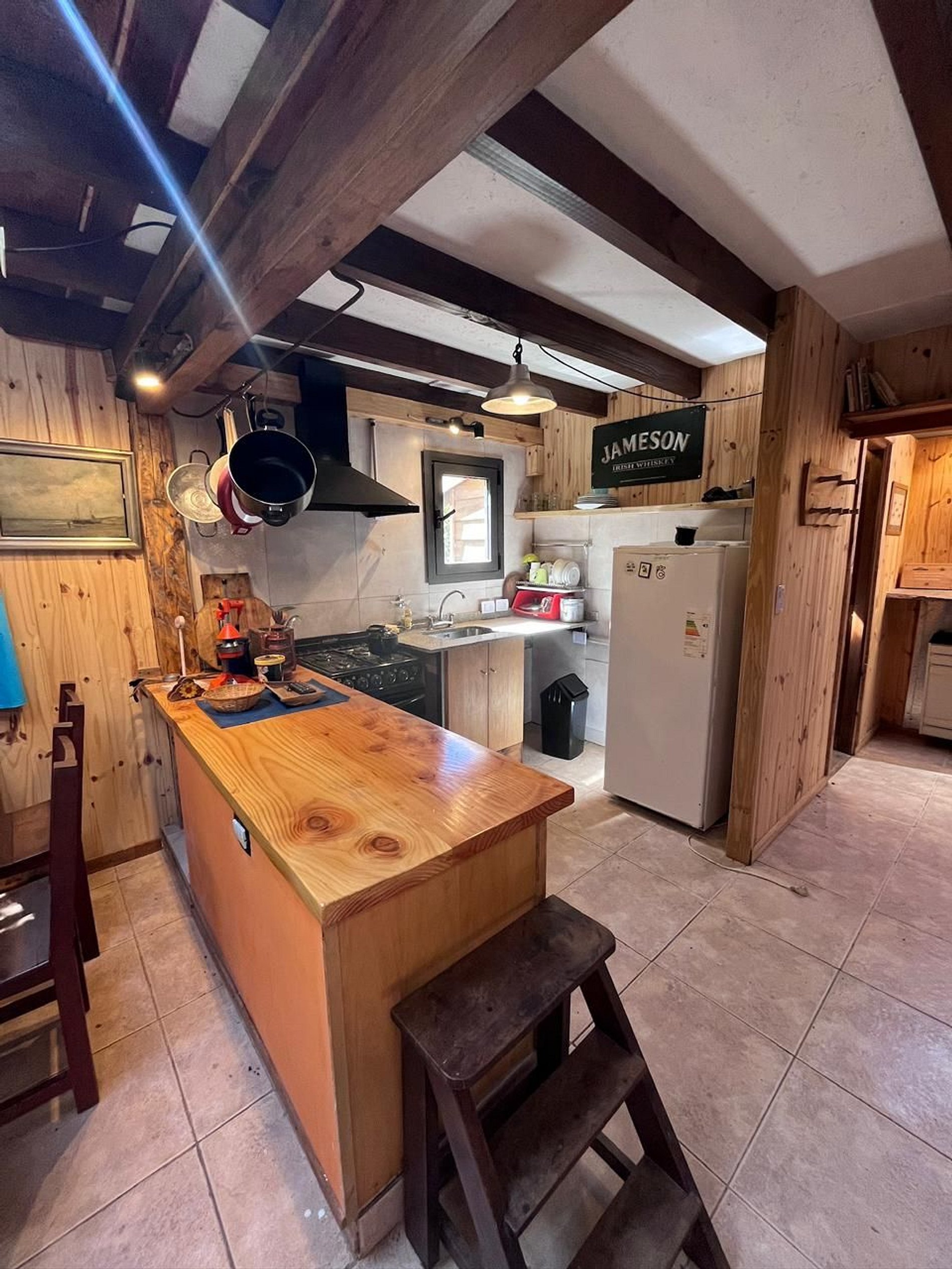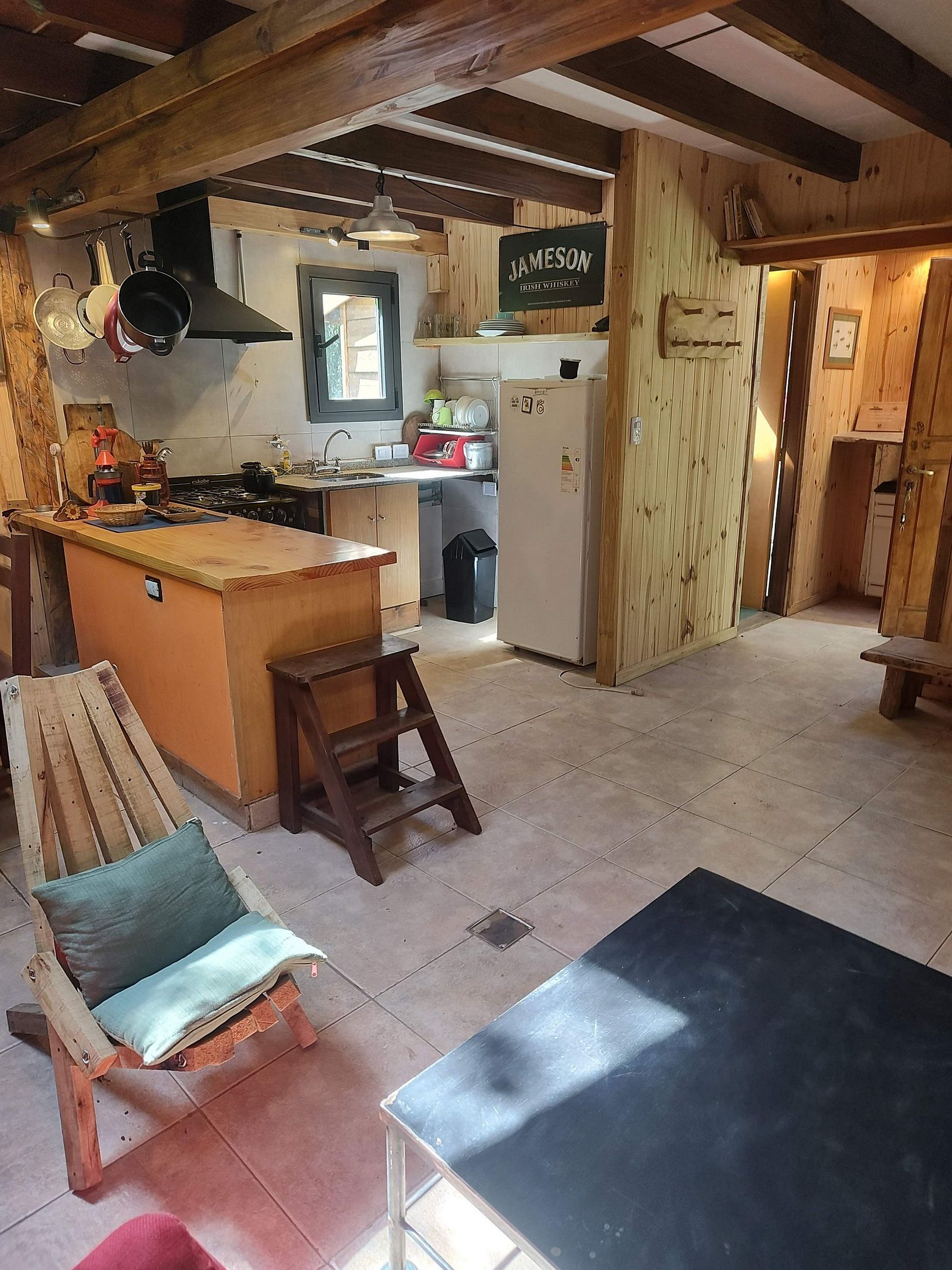 A solo tres cuadras del Lago Lolog, esta cabaña te recibe con un jardín rodeado de naturaleza y una parrilla exterior ideal para disfrutar al aire libre. Al entrar, el ambiente se siente cálido y acogedor: el living se integra con la cocina completa, creando un espacio cómodo para compartir momentos en familia. El living posee una tv con CHROMECAST.