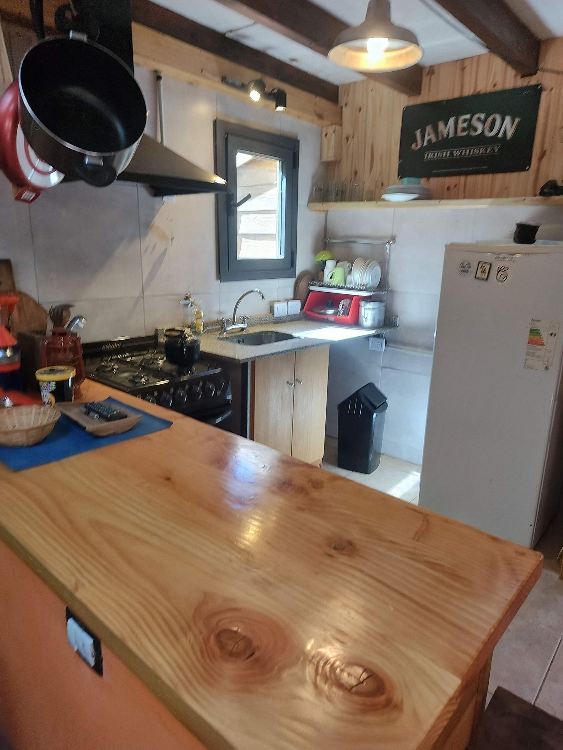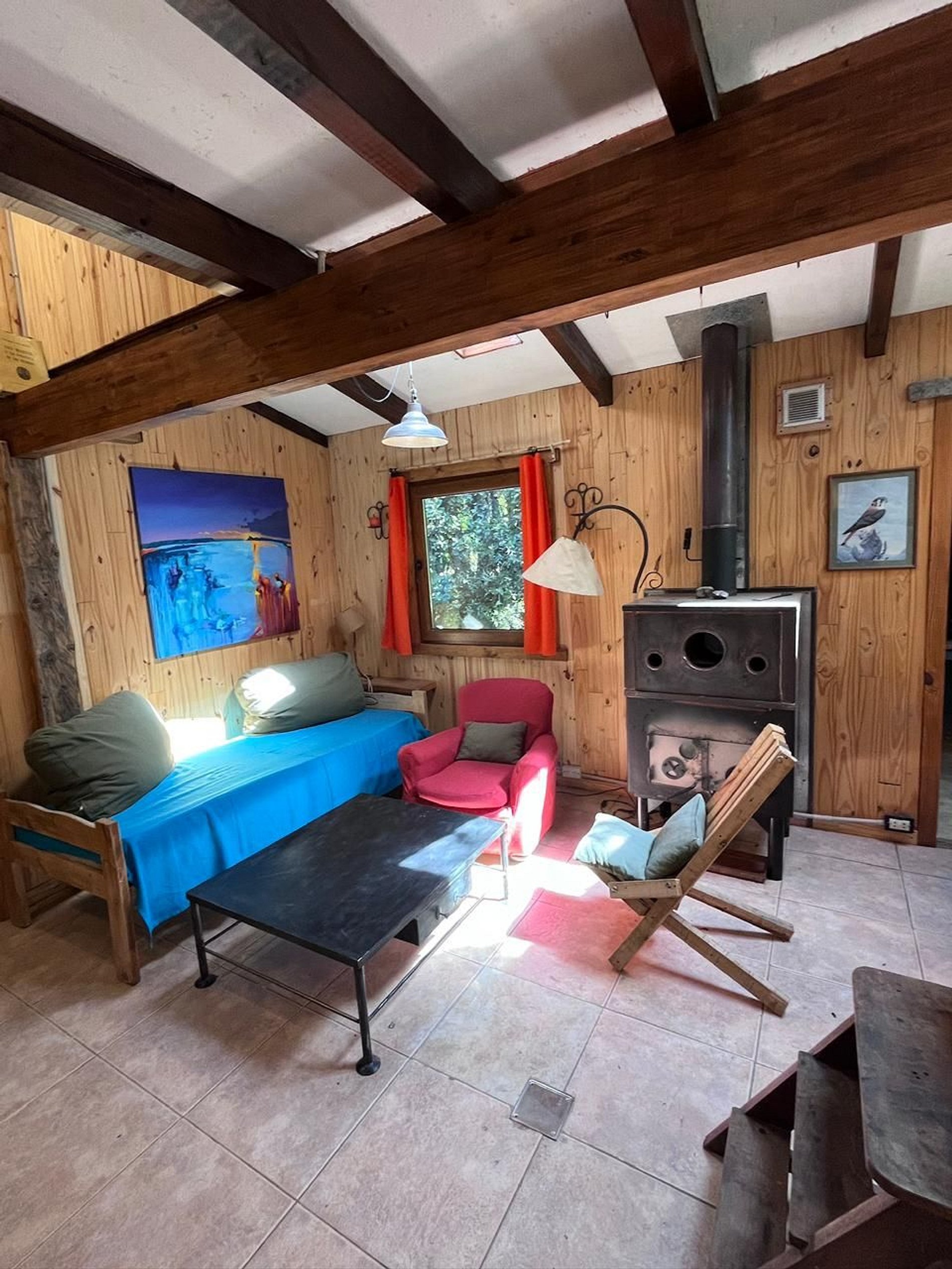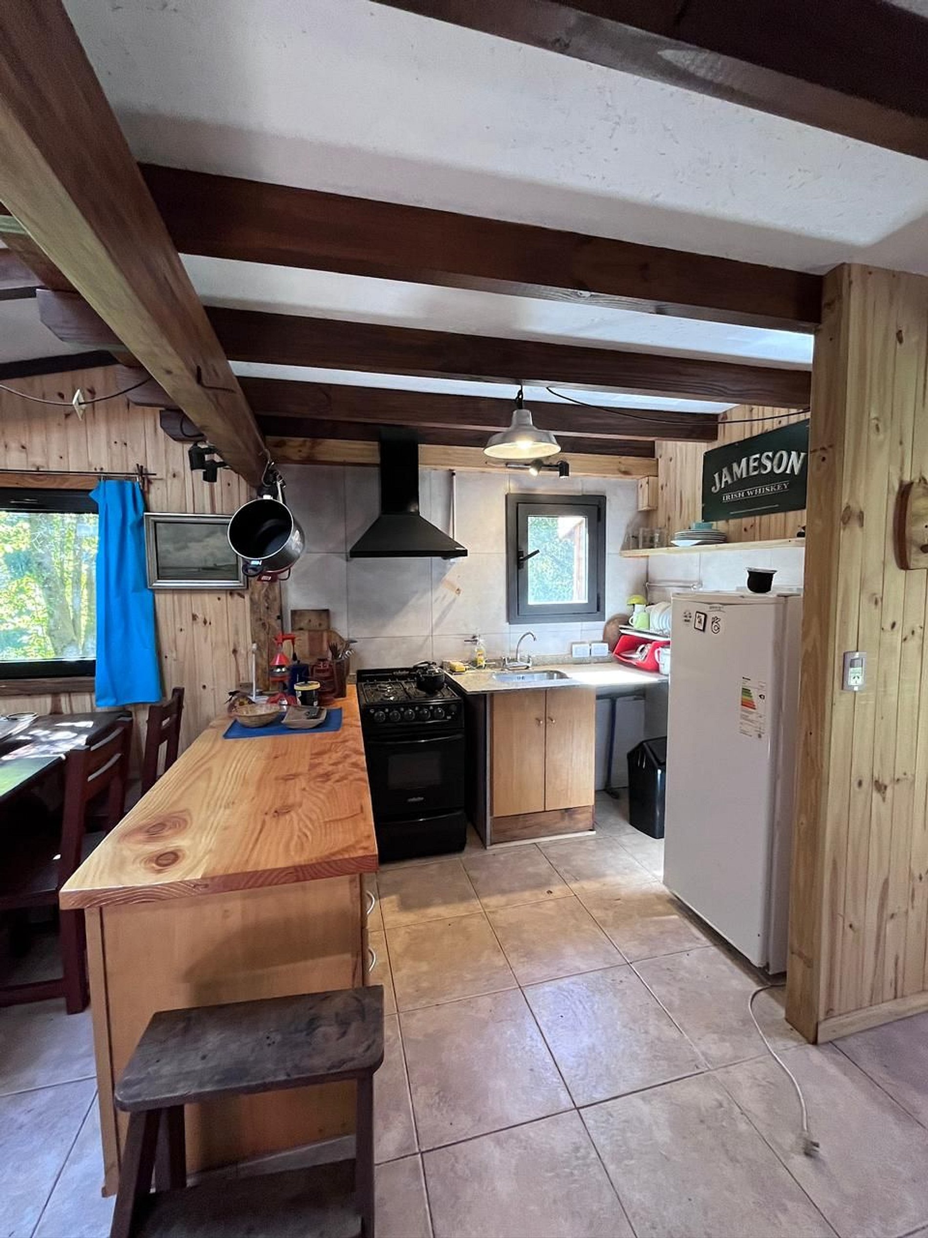 A solo tres cuadras del Lago Lolog, esta cabaña te recibe con un jardín rodeado de naturaleza y una parrilla exterior ideal para disfrutar al aire libre. Al entrar, el ambiente se siente cálido y acogedor: el living se integra con la cocina completa, creando un espacio cómodo para compartir momentos en familia. El living posee una tv con CHROMECAST.