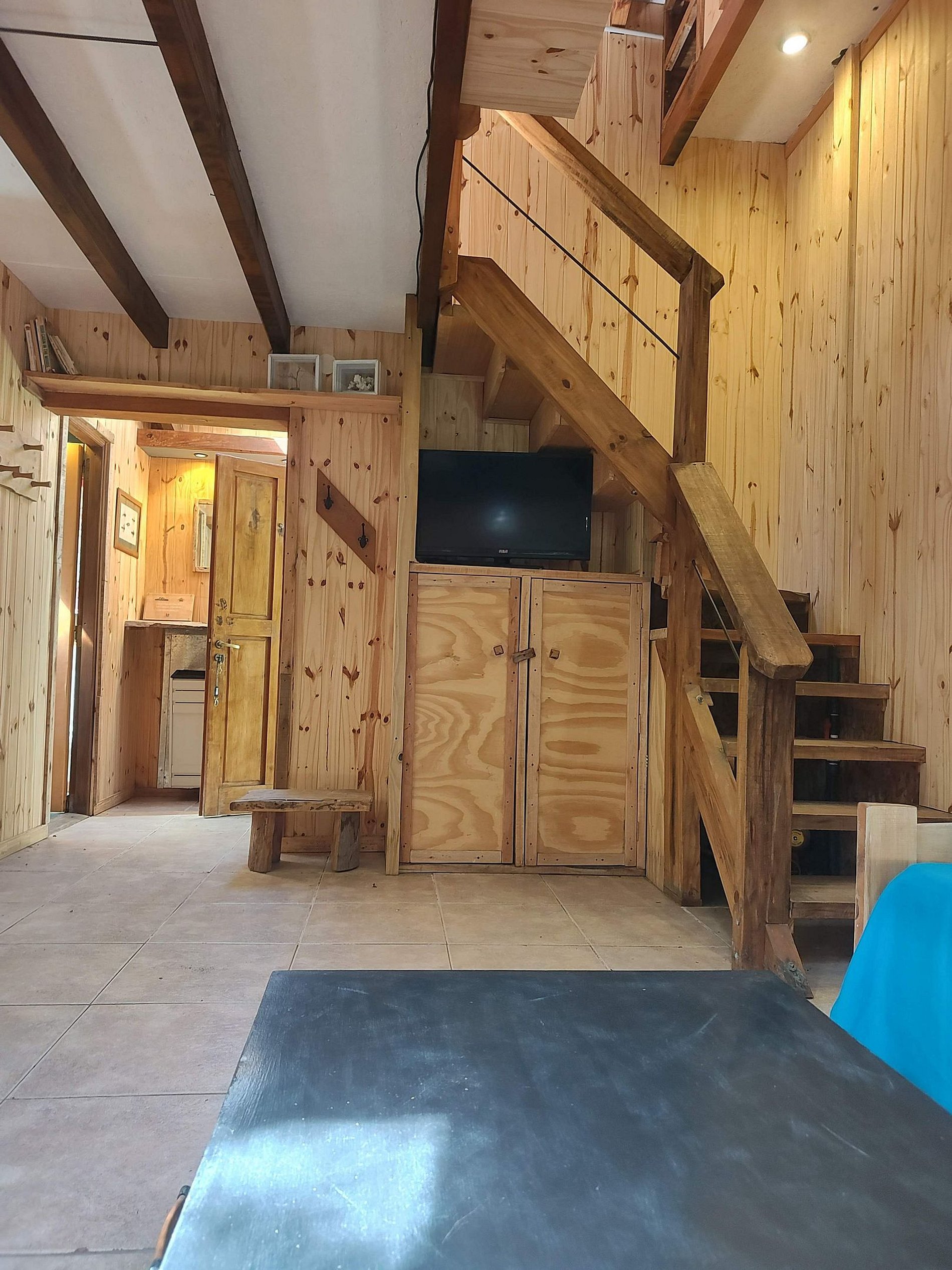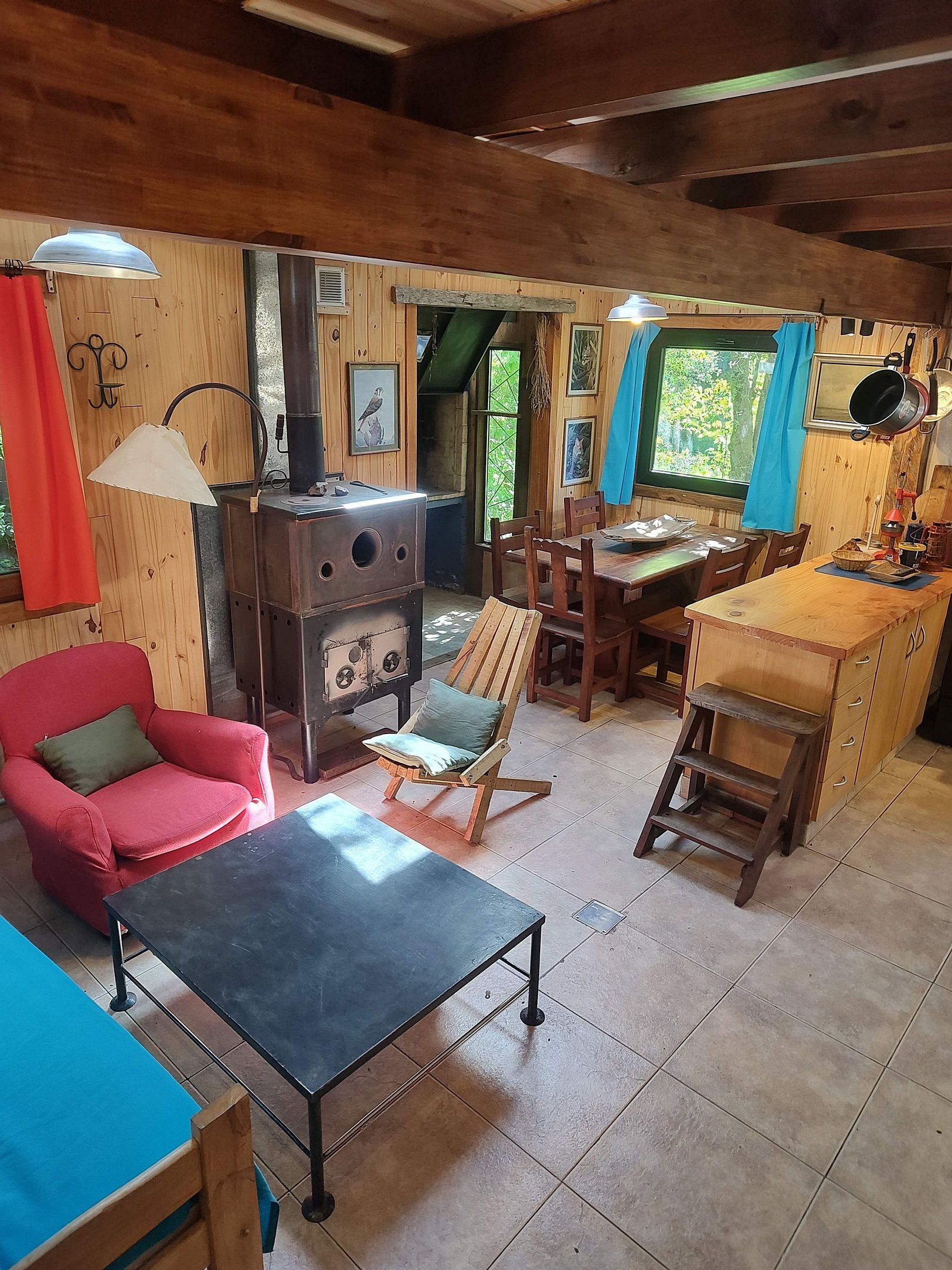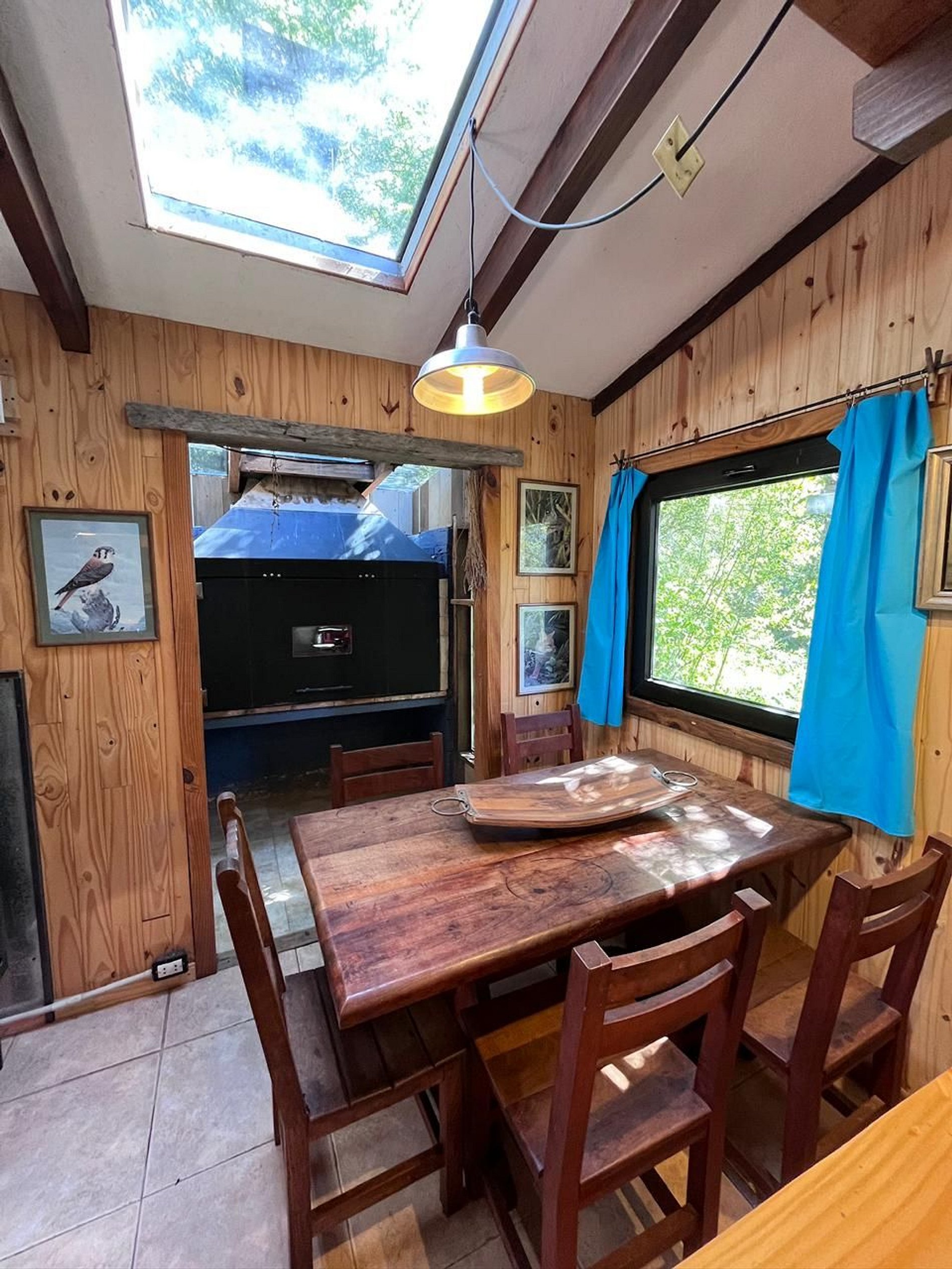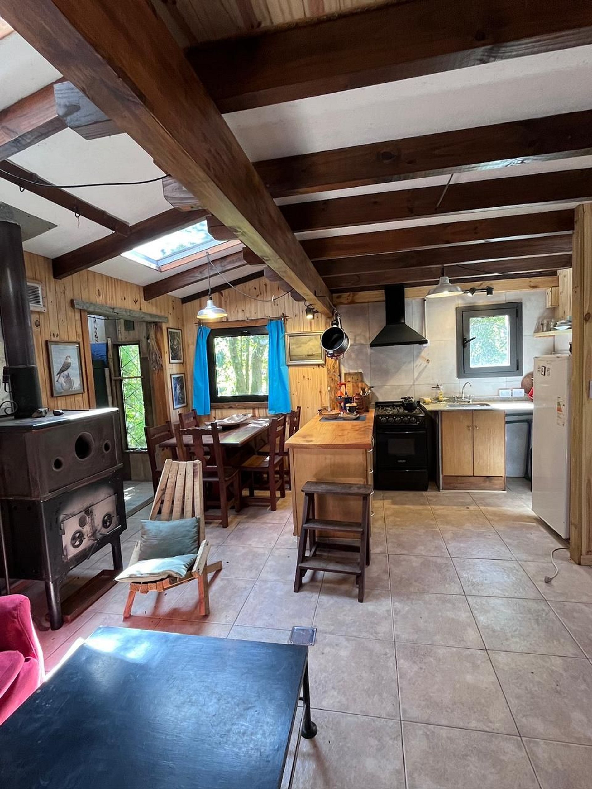 A solo tres cuadras del Lago Lolog, esta cabaña te recibe con un jardín rodeado de naturaleza y una parrilla exterior ideal para disfrutar al aire libre. Al entrar, el ambiente se siente cálido y acogedor: el living se integra con la cocina completa, creando un espacio cómodo para compartir momentos en familia. El living posee una tv con CHROMECAST.