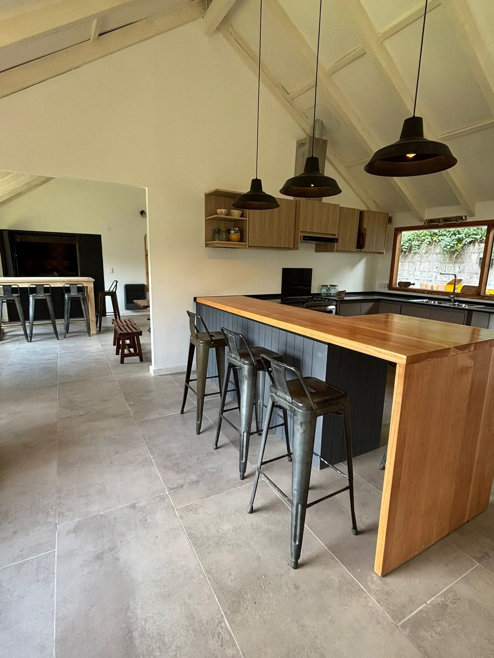 En la planta alta se desarrolla el área social, con un cómodo living y cocina integrada, un quincho con parrilla perfectamente incorporado al espacio, toilette y lavadero. Los grandes ventanales permiten apreciar increíbles vistas a la montaña, aportando luz natural y una sensación permanente de amplitud.