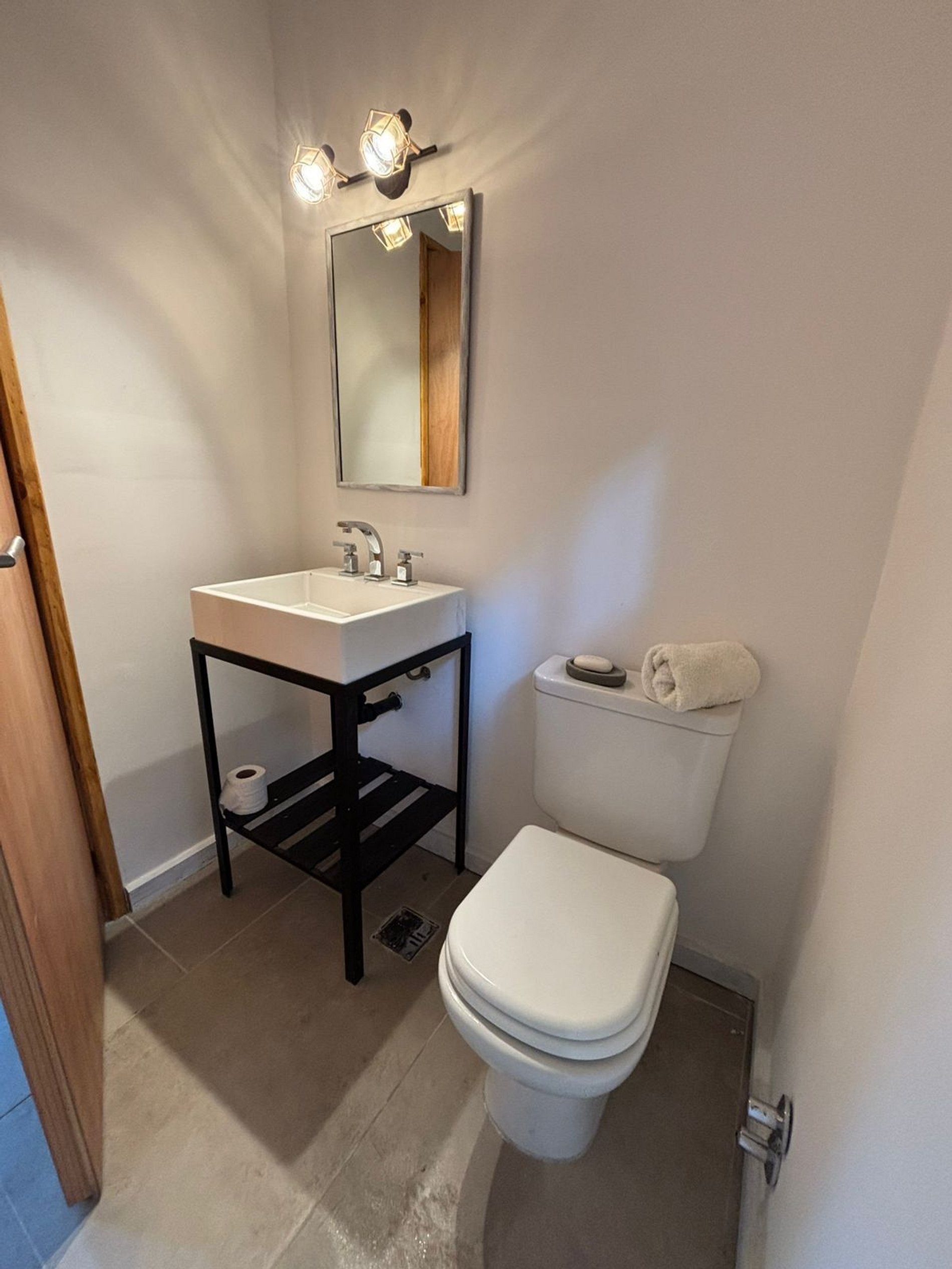La planta baja está destinada al descanso y cuenta con cuatro dormitorios: un dormitorio matrimonial en suite con vestidor, un segundo dormitorio matrimonial, un dormitorio con dos camas simples y un cuarto dormitorio con una cama simple más cama carrito. En esta planta se encuentra además un baño completo adicional.