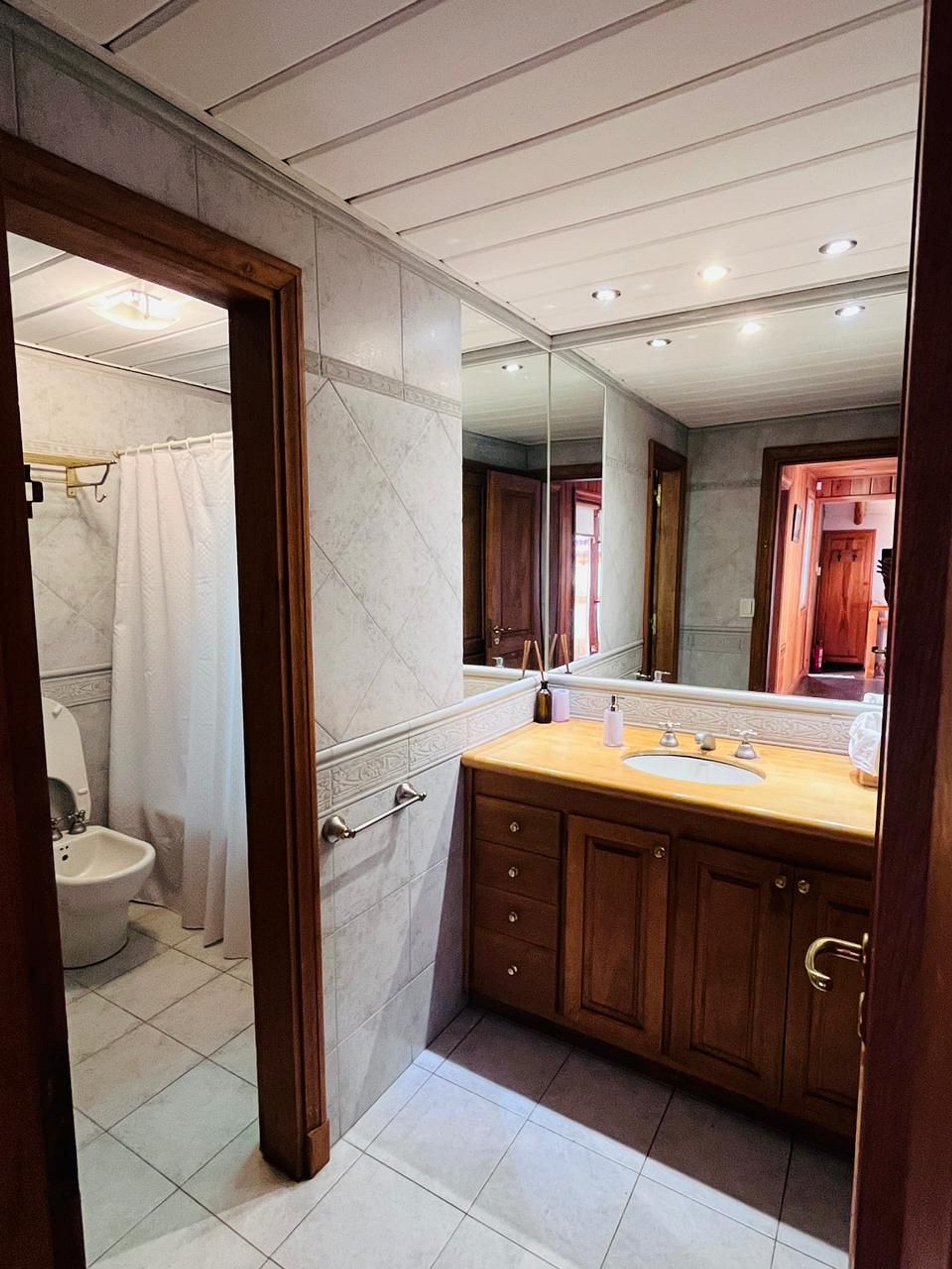 En la planta alta, se encuentra el dormitorio principal con una cómoda cama matrimonial y un baño completo, brindando un oasis de tranquilidad y descanso.