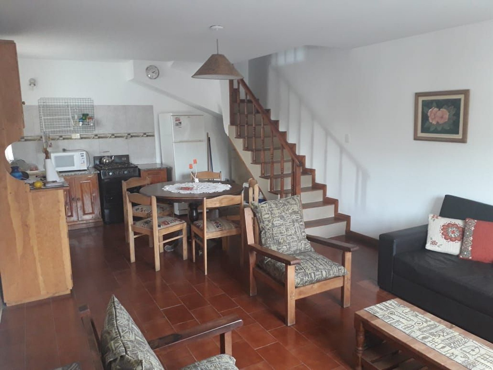Se accede al living comedor con cocina integrada y en la planta alta tiene 2 dormitorios. Uno matrimonial y el otro con dos camas simples. Baño completo con bañadera y ducha.
