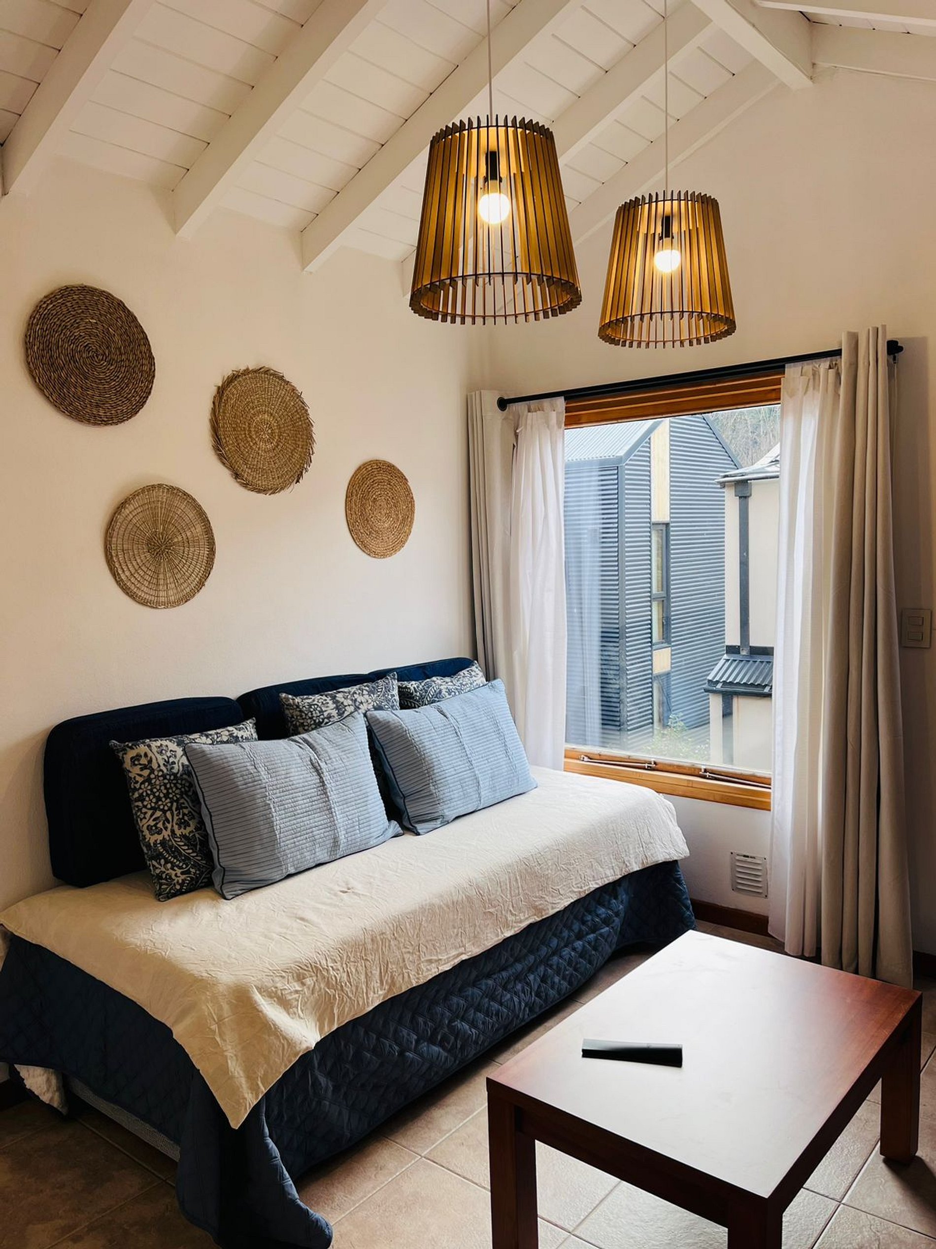 Al ingresar, te recibe un amplio y luminoso living con una cama y un carrito que sale de abajo, este espacio se integra perfectamente con la cocina y el comedor, creando un ambiente acogedor y funcional, ideal para disfrutar de momentos en familia o con amigos. El dormitorio tiene una cama matrimonial, alfombrado y con una vista abierta, ofrece un ambiente de tranquilidad y descanso. El baño es completo y cuenta con una bañadera, perfecta para relajarte después de un día ajetreado.