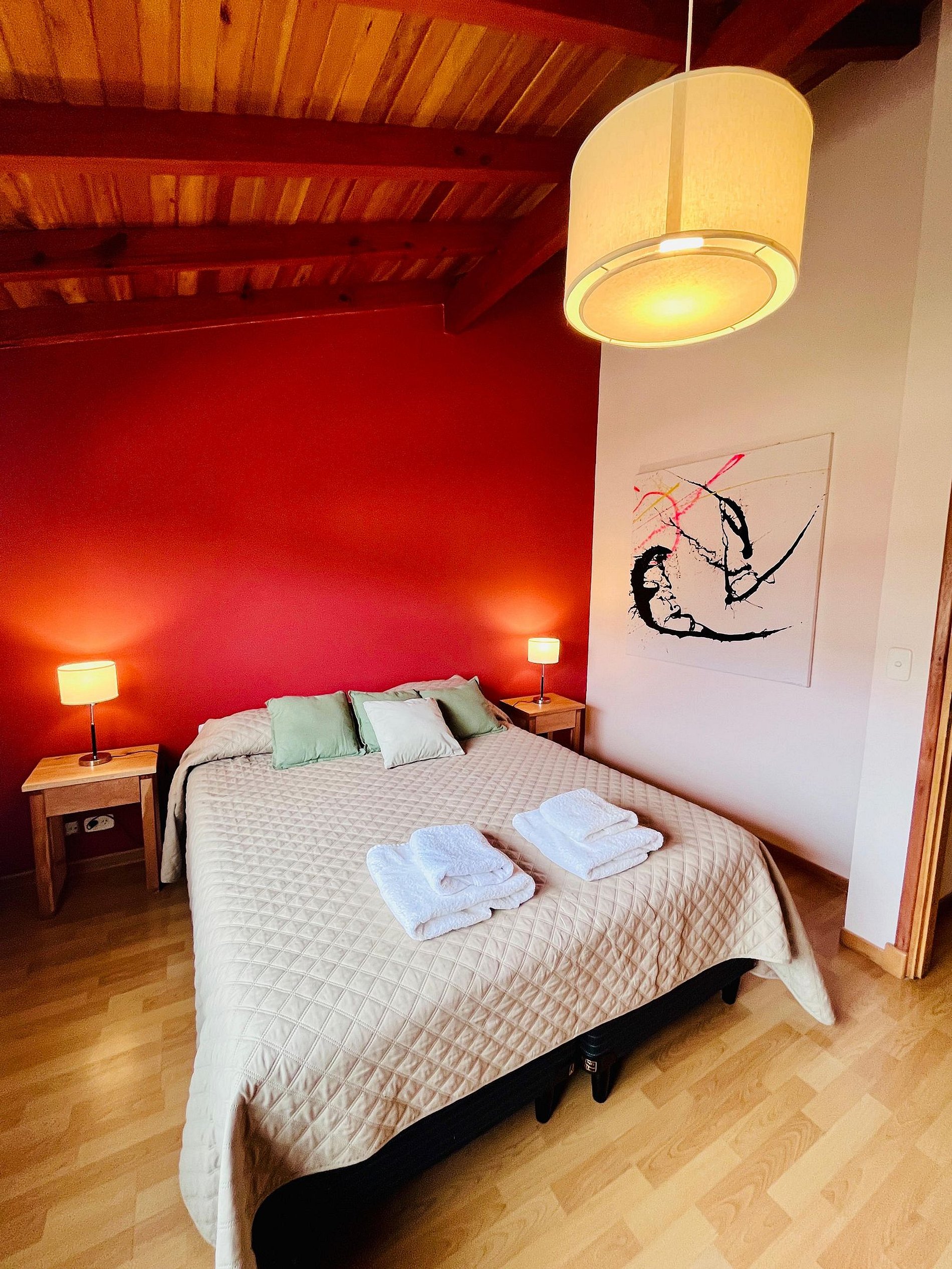 En la planta alta, se encuentran dos dormitorios. El dormitorio principal es matrimonial, mientras que el segundo dormitorio tiene dos camas simples que pueden unirse para formar una cama matrimonial, adaptándose a las necesidades de los huéspedes. Ambos dormitorios comparten un baño completo.