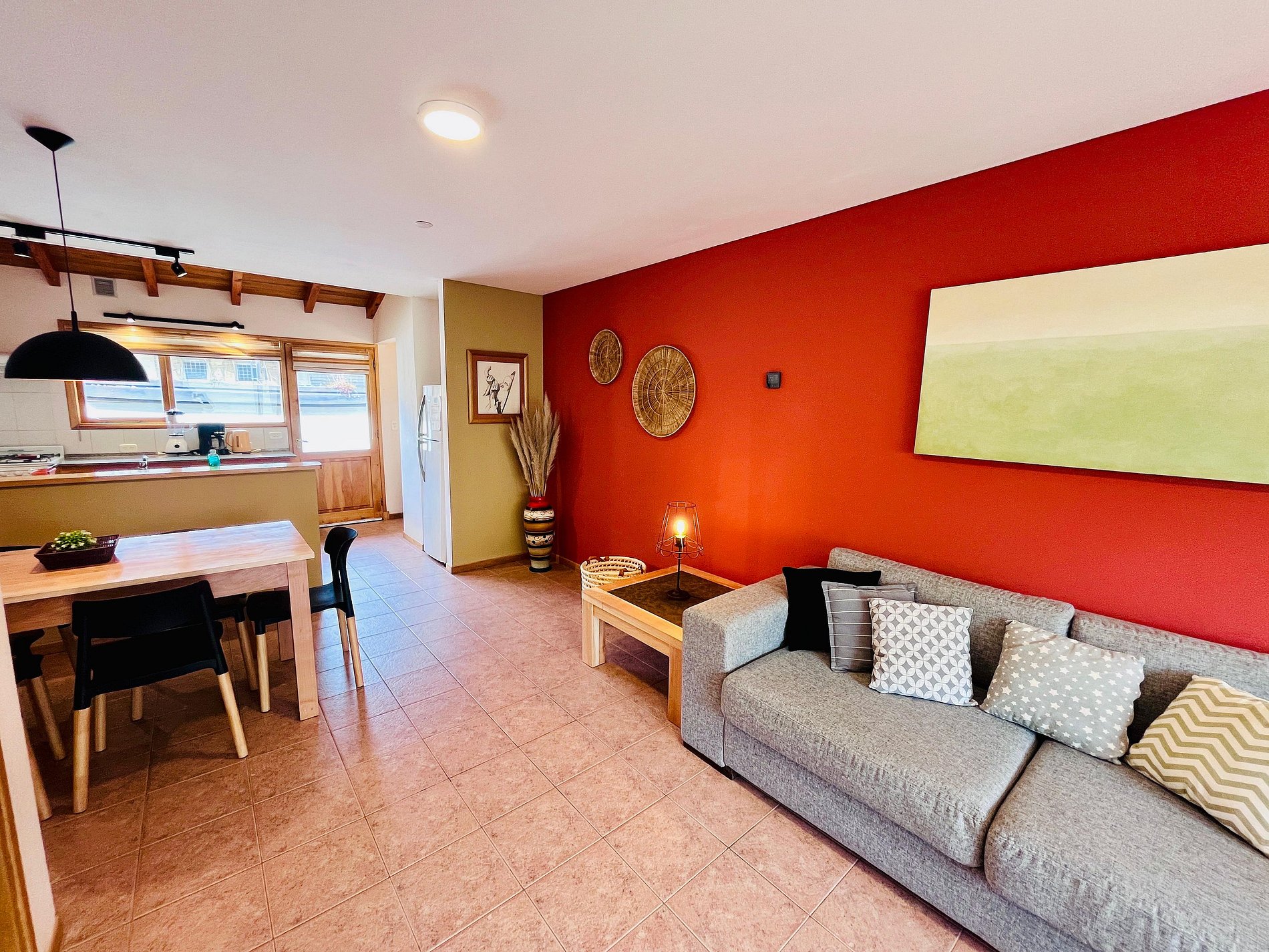 Esta cabaña tipo dúplex es un espacio acogedor y funcional, ideal para una estancia confortable. Se encuentra a 10 minutos del centro, en una zona cercana a comercios como supermercados, farmacia, estaciona de servicio, etc. En la planta baja, se encuentra un living equipado con una TV Smart, perfecto para momentos de entretenimiento. También hay un pequeño toilette para mayor comodidad. El comedor y la cocina están integrados en un ambiente abierto y luminoso, ofreciendo un espacio cómodo para disfrutar de las comidas. La cocina está equipada con todo lo necesario, incluyendo un lavarropas. Desde la planta baja, se accede a un pequeño patio.